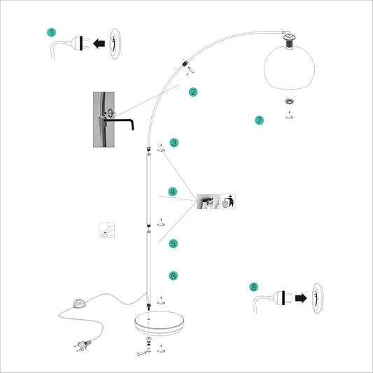 Bogenstandleuchte 1, 7 m Chrom/Weiß