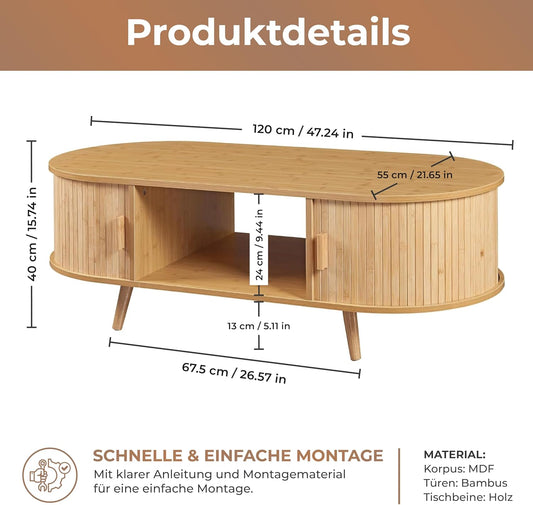 Skandi Bambus Sofatisch mit Stauraum 120 X 55 X 40 cm