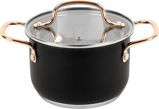 Topfset schwarz, Edelstahl 3-teilig für alle Herdarten. 1.9 / 2,6 / 4,7 liter