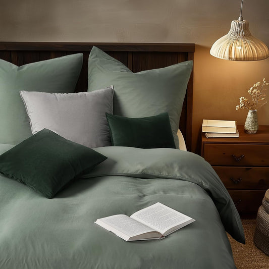 Verschiedene Größen! Bettwäsche-Set Salbei Hypoallergen 1 Bettbezug 135 X 200cm + 1 Kissenbezüge 80X80 cm mit Reißverschluss.
